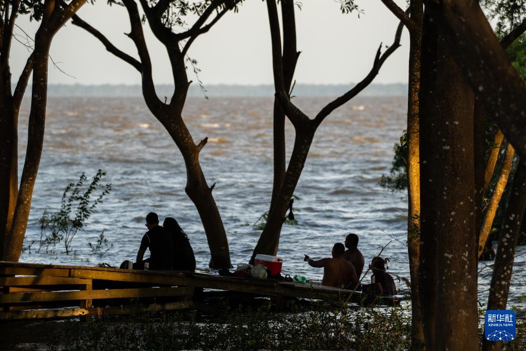 11月9日,在巴西馬卡帕市,人們在河邊的樹林中休憩。