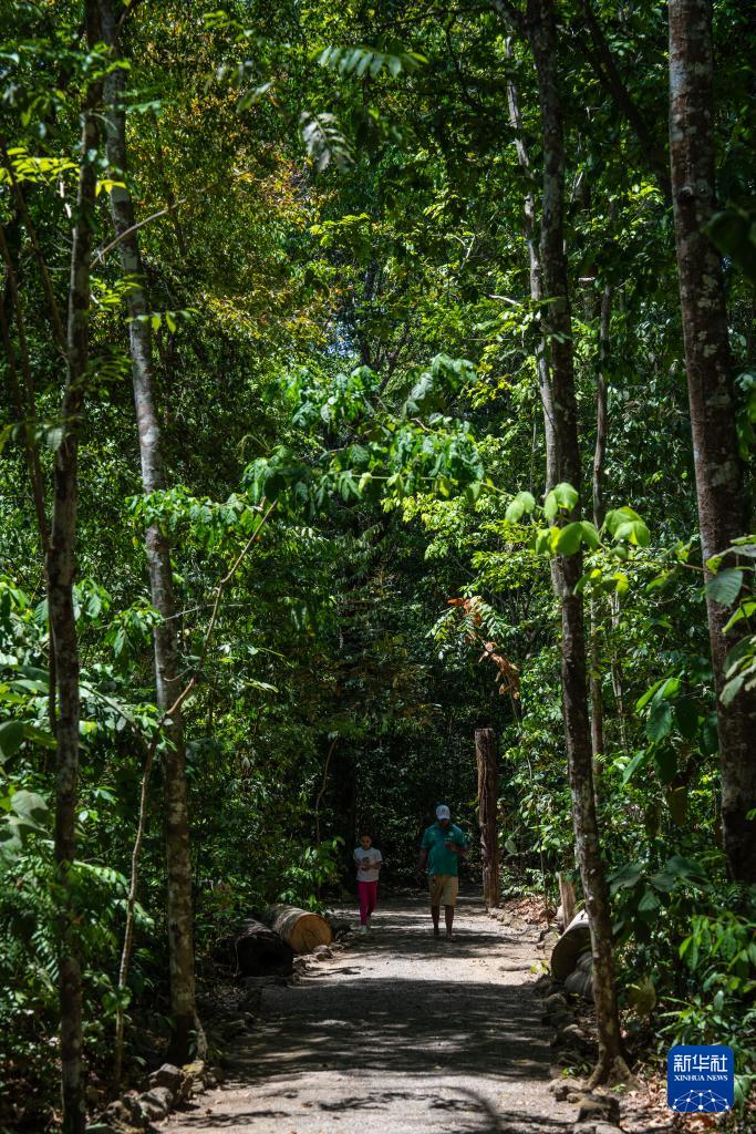 11月9日,在巴西馬卡帕市的薩卡卡博物館,游客在熱帶雨林步道上漫步。