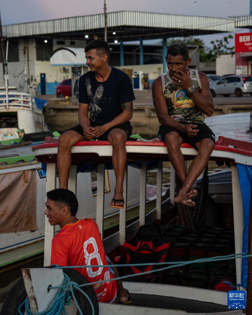 11月8日,在巴西馬卡帕市,人們在港口的船只上交談。