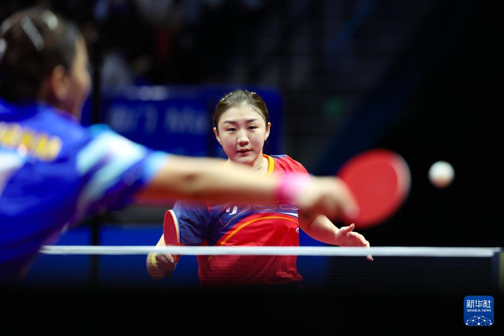 11月11日,孫銘陽(左)與陳夢在比賽中。