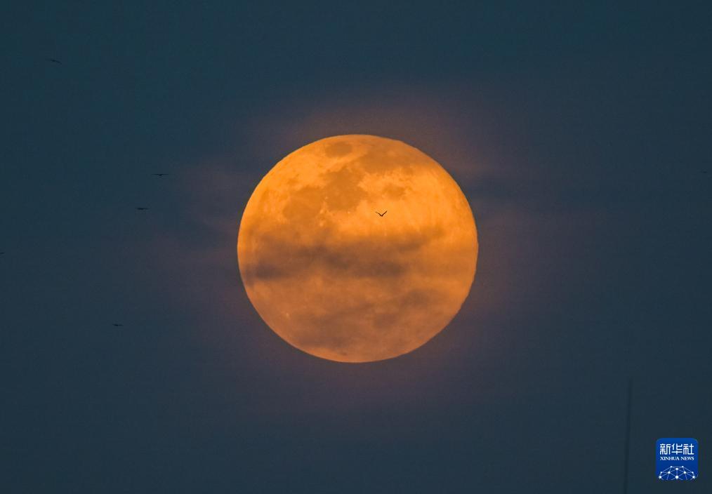 當日,“超級月亮”現身天宇。這是全年最接近地球的滿月,因此也是年度最大滿月。