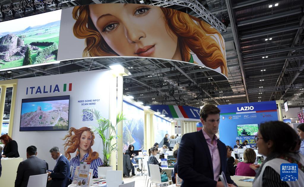 11月4日,在英國首都倫敦,人們在2025年英國倫敦世界旅游交易會意大利展區(qū)洽談。