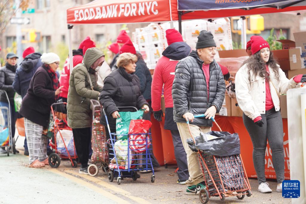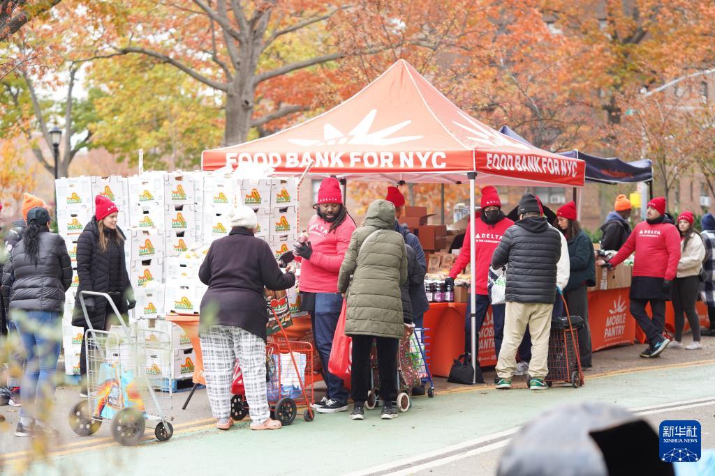 11月12日,人們在美國紐約一處食物發放點領取食物。