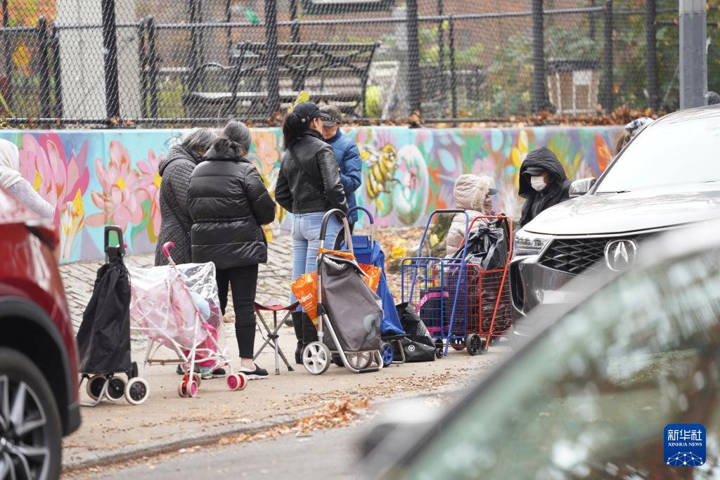 11月12日,人們在美國紐約一處食物發放點領取食物。