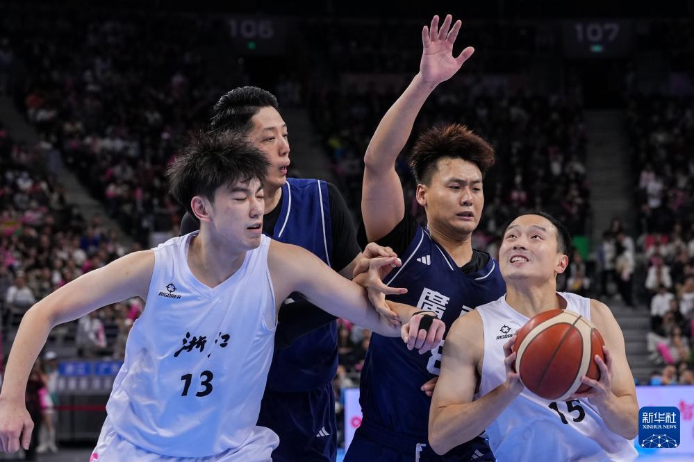 11月12日,浙江隊球員王奕博(右一)在比賽中突破。