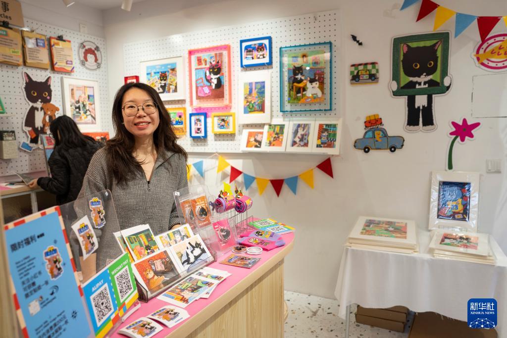 11月12日,在上海市長寧區愚園路的故事商店,工作人員展示文創產品。愚園路故事商店是由街道支持打造的10平方米特色空間,街道免費提供沿街鋪面,將其打造成居民情感交流的"解憂雜貨鋪"。