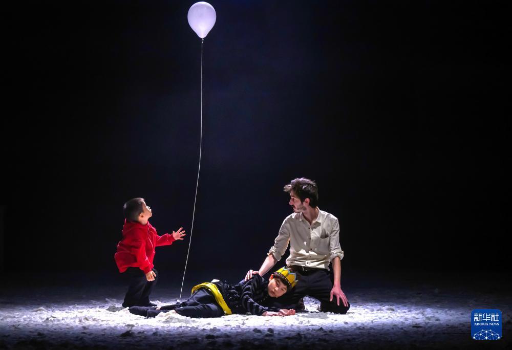 11月15日,演員李一辰(中)、金珍禾(左)、弗朗索瓦在音樂戲劇《小王子》中表演。