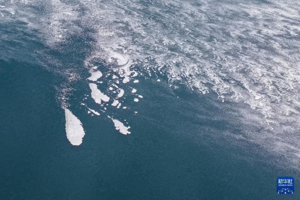 這是11月16日在甘肅省酒泉市阿克塞縣阿伊納鄉拍攝的大蘇干湖結冰湖面(無人機照片)。
