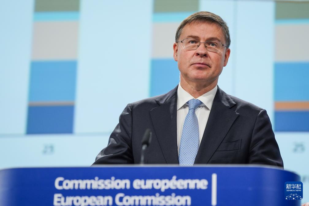 11月17日,歐盟委員會負責經(jīng)濟事務(wù)的委員東布羅夫斯基斯在比利時布魯塞爾發(fā)布2025年秋季經(jīng)濟展望報告。新華社記者 彭子洋 攝