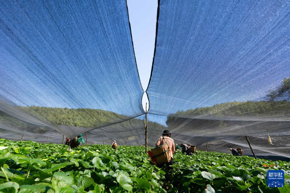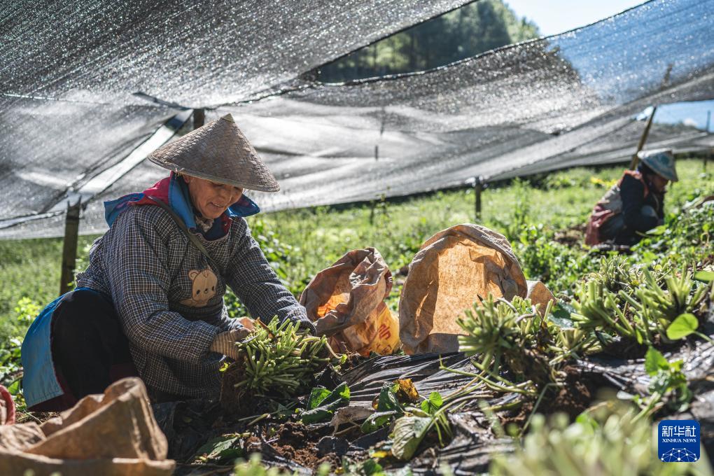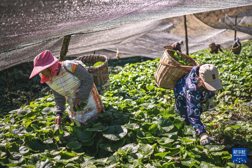 11月17日,農民在云南省保山市隆陽區楊柳白族彝族鄉冷水村一處山葵種植基地內采摘山葵。