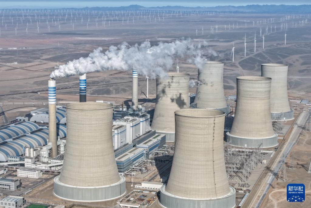 這是11月19日在甘肅省酒泉市瓜州縣拍攝的甘肅電投常樂電廠外景(無人機(jī)照片)。