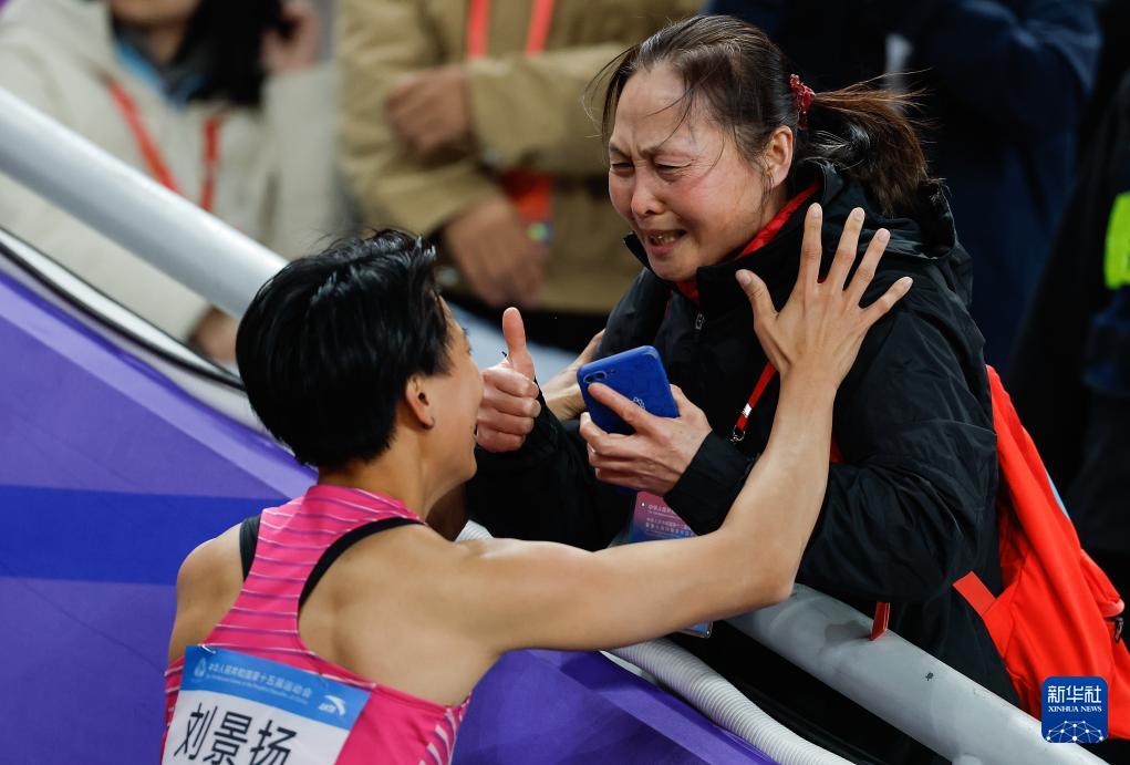 11月19日,廣東隊選手劉景揚(左)在比賽后和母親交流。她奪得冠軍。