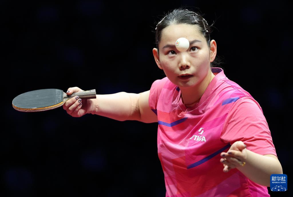 11月19日,河北隊選手何卓佳在女單比賽中發球。最終,她2比3不敵山東隊選手范思琦。