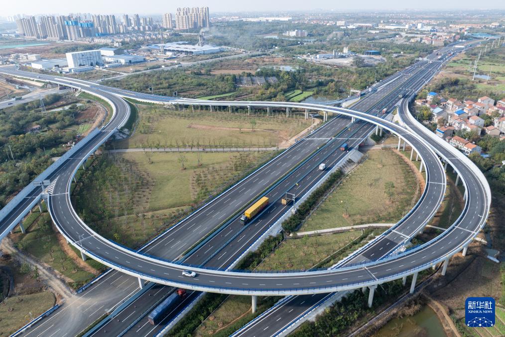 這是11月20日拍攝的京港澳高速公路改擴建孝感東互通樞紐(無人機照片)。