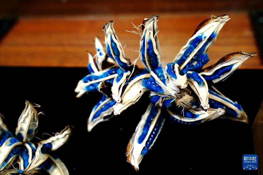 11月19日在辰山中心植物種子展柜中拍攝的旅人蕉藍(lán)色種子。