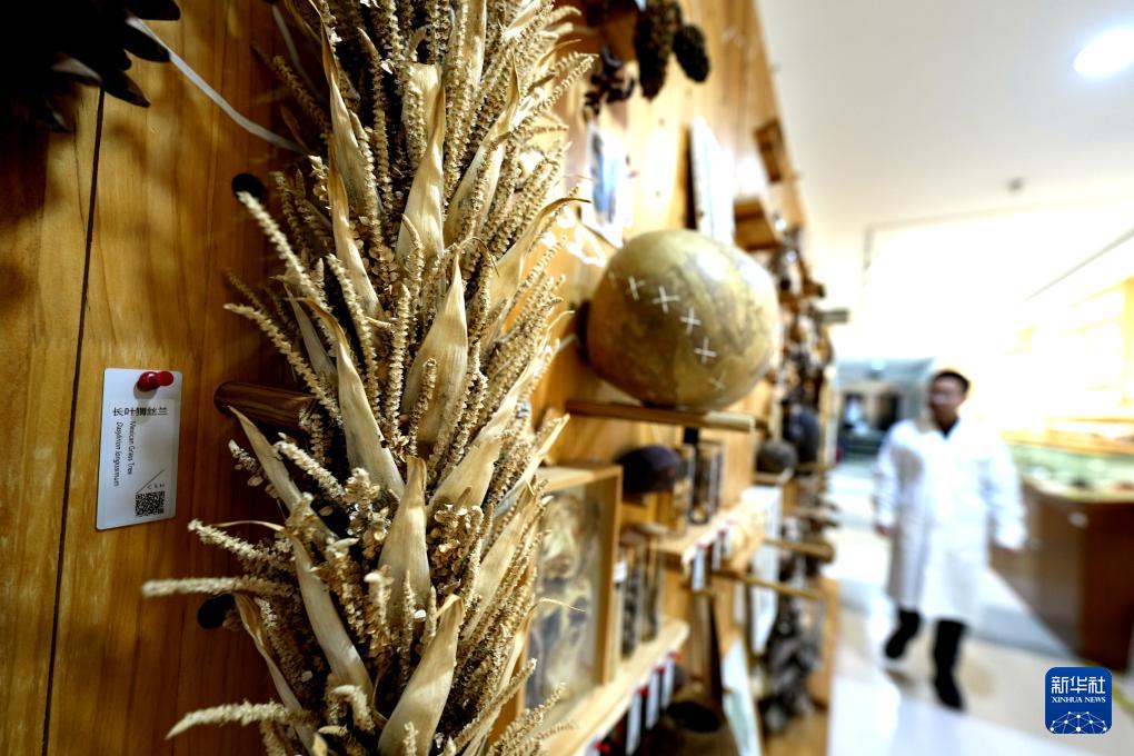 11月19日在辰山中心植物種子標本墻拍攝的長葉猬絲蘭種子。