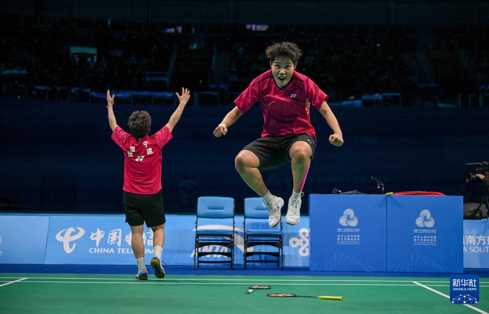 11月20日,福建隊組合黃東萍(右)/譚寧慶祝比賽勝利。