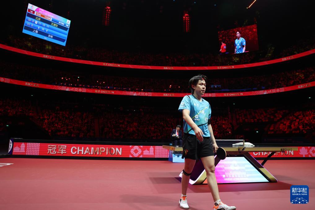 11月20日,北京隊選手王楚欽在男單比賽中。他3比0戰(zhàn)勝上海隊選手許昕。