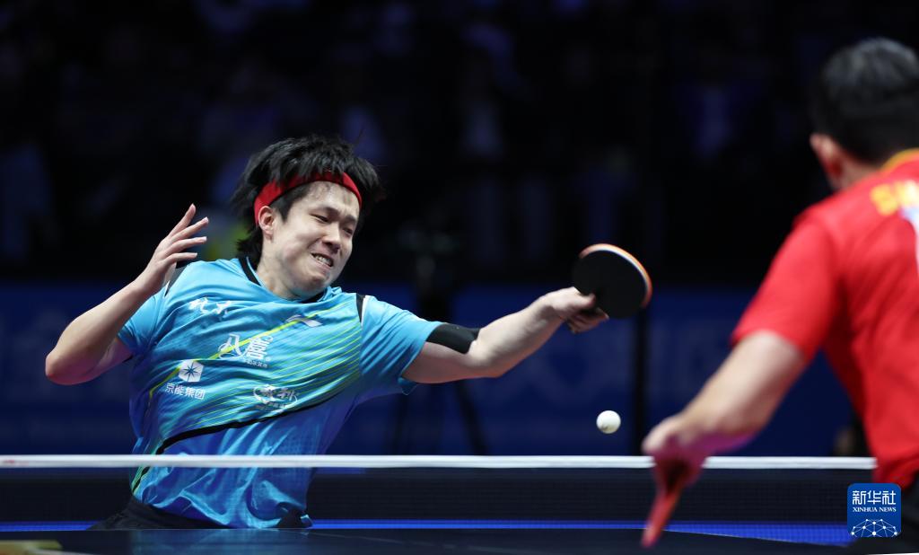 11月20日,上海隊選手許昕在男單比賽中回球。他0比3不敵北京隊選手王楚欽。
