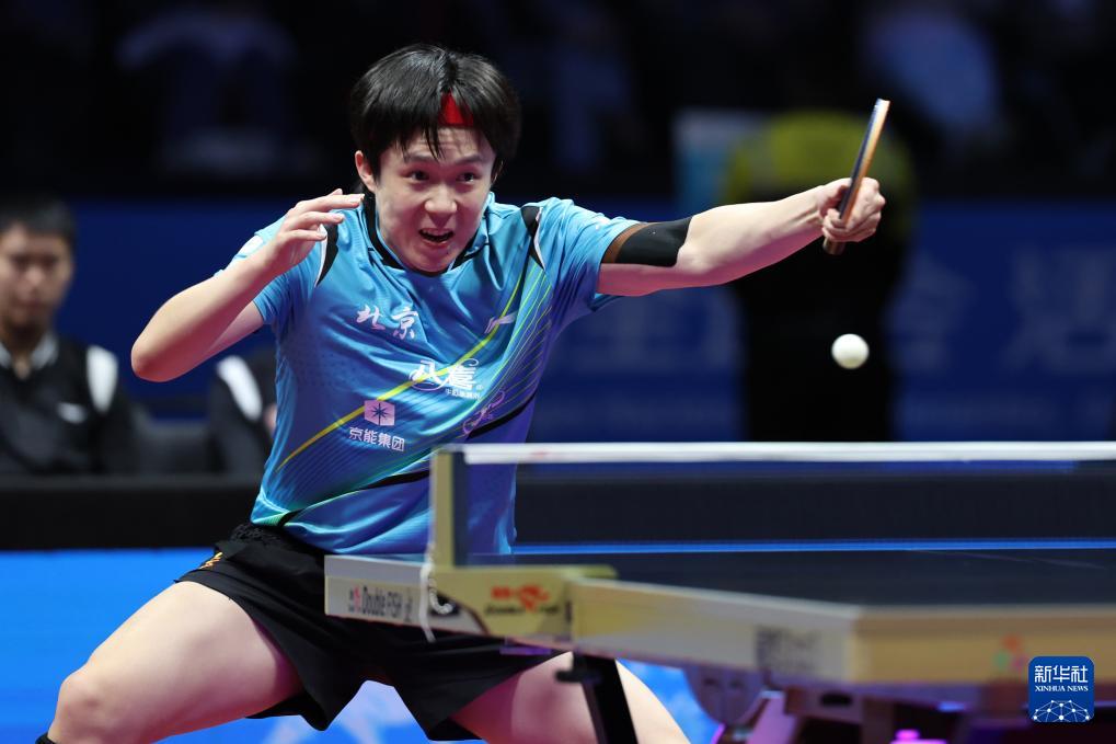11月20日,北京隊選手王楚欽在男單比賽中回球。他3比0戰(zhàn)勝上海隊選手許昕。