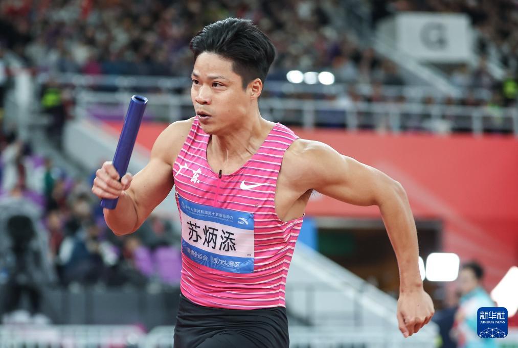 當日,第十五屆全國運動會田徑項目男子4X100米接力決賽在廣州舉行。