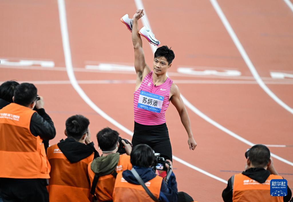 11月20日,廣東隊(duì)選手蘇炳添在比賽后向觀眾致意。
