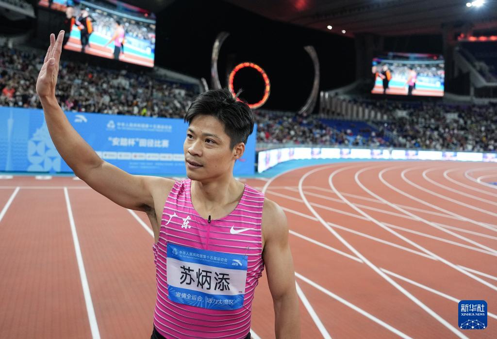 11月20日,廣東隊(duì)選手蘇炳添在比賽后向觀眾致意。