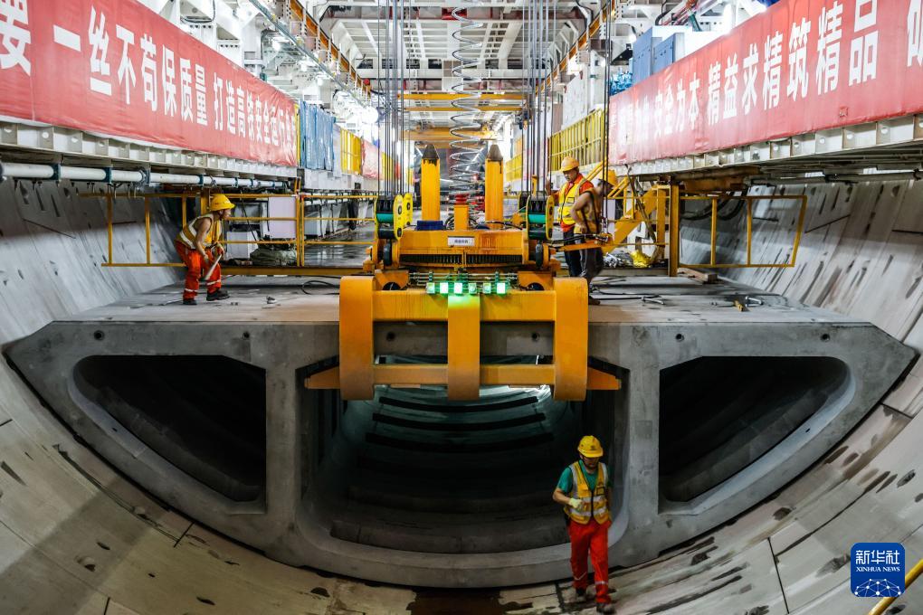 11月23日,施工人員在廣南聯絡線西塱隧道安裝隧道箱涵。