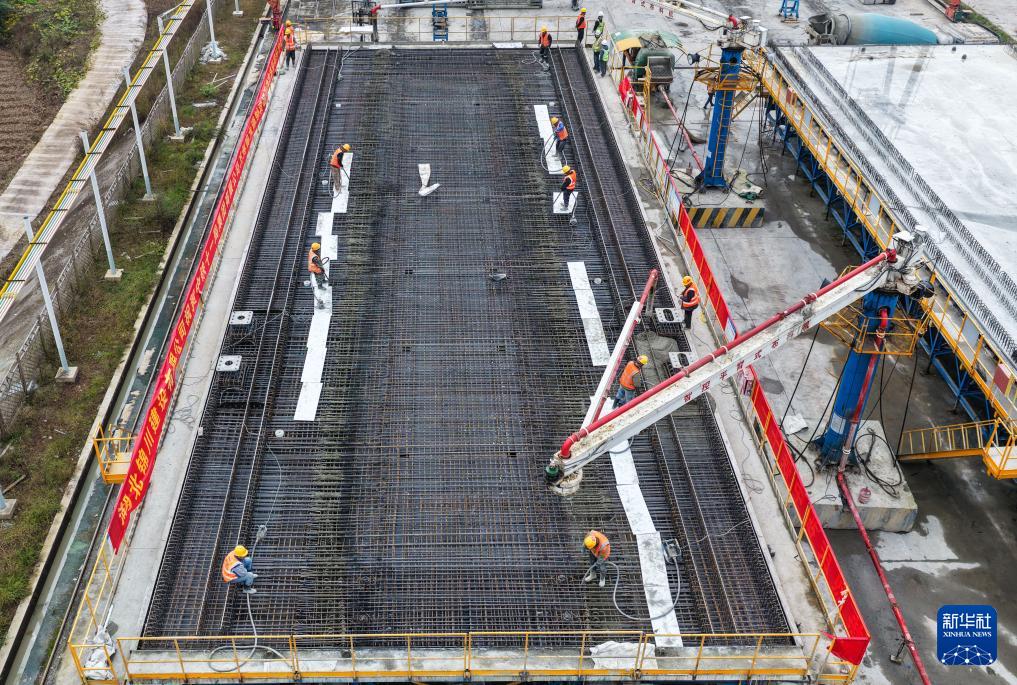 11月23日,在重慶市萬州中鐵十一局響水鎮(zhèn)制梁場現(xiàn)場,工作人員進(jìn)行最后一榀箱梁的制作。