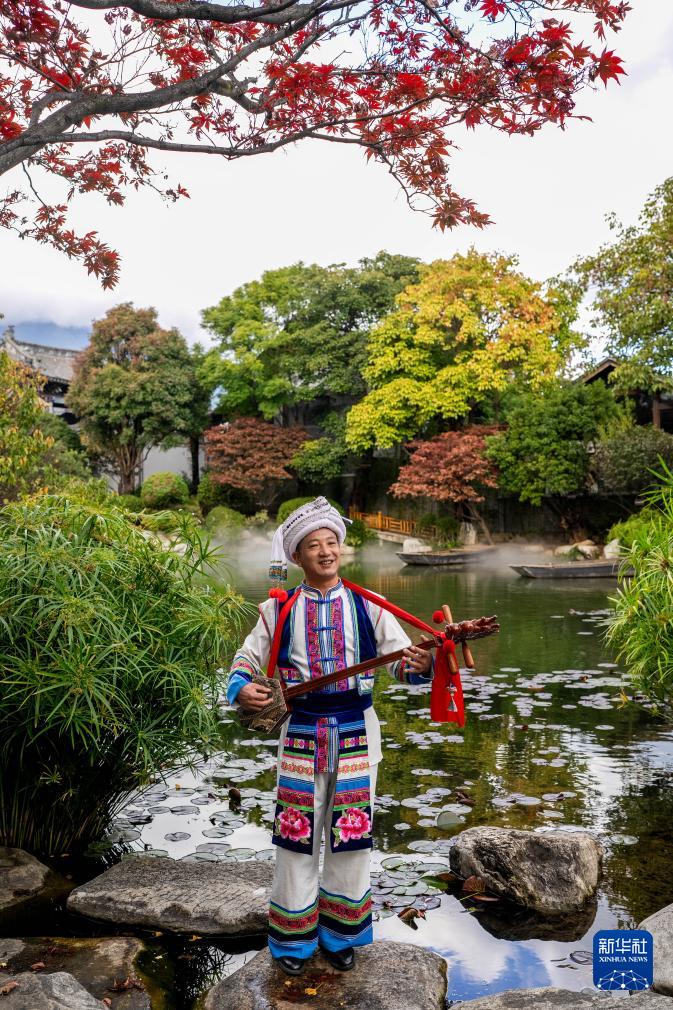 11月23日,石寶山歌會省級傳承人李兆元在2025非遺品牌推廣周上彈唱。
