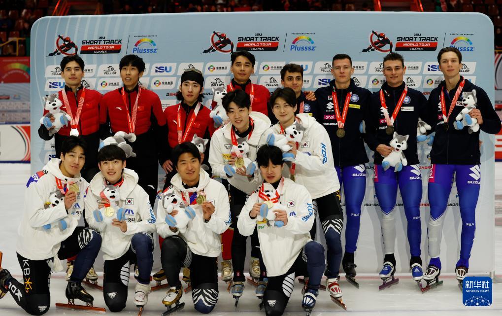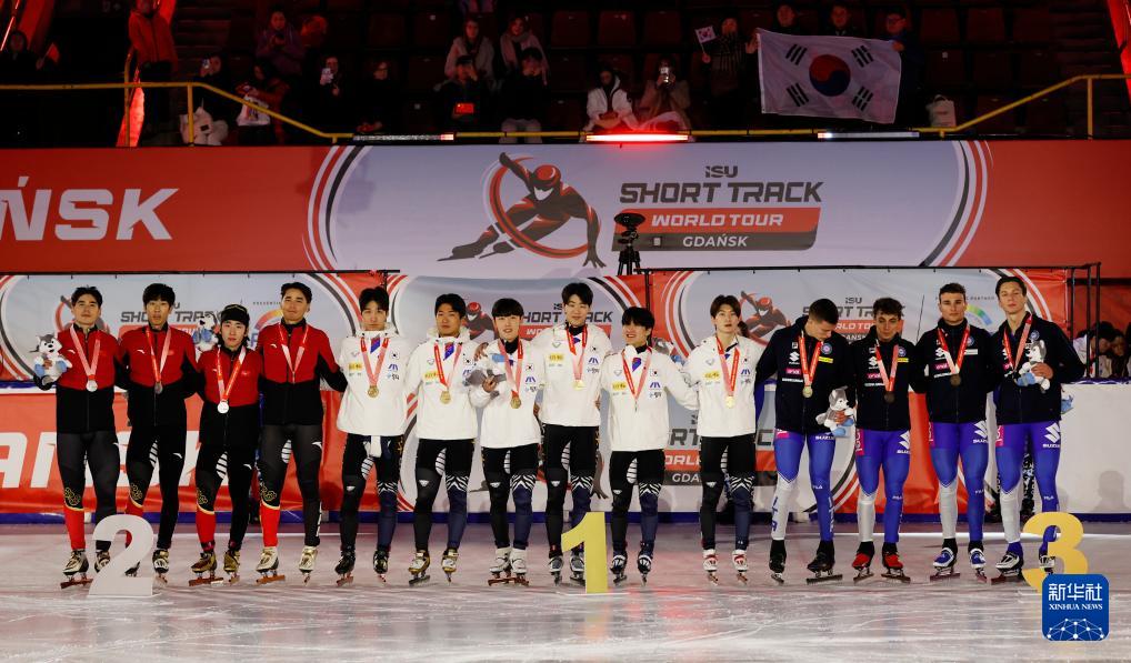 當日,在波蘭格但斯克舉行的2025-2026賽季國際滑聯(lián)短道速滑世界巡回賽暨米蘭冬奧會資格賽第三站男子5000米A組決賽中,韓國隊奪得冠軍,中國隊獲得亞軍,意大利隊獲得季軍。