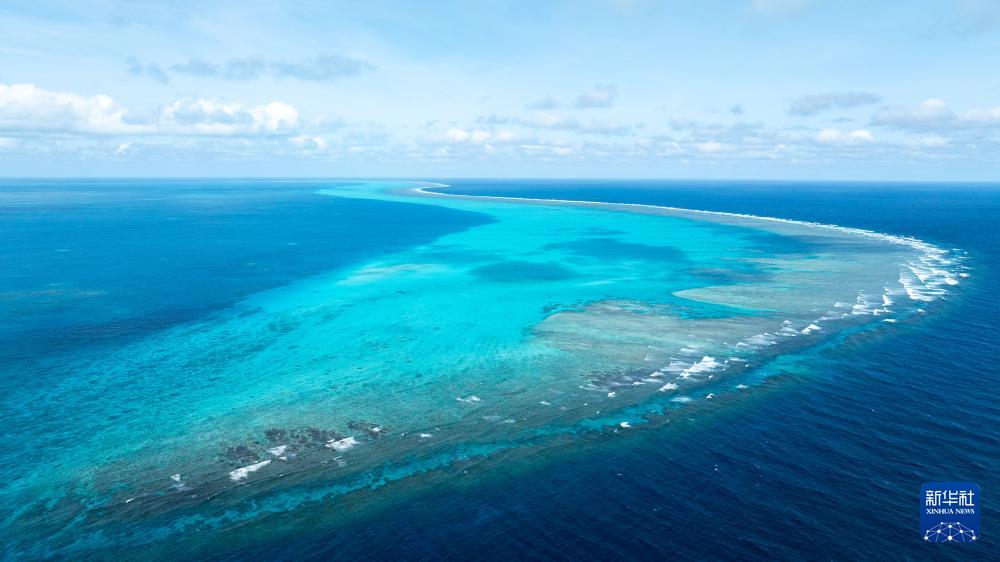 黃巖島位于我國中沙群島,湛藍的海水和島上的礁盤相映成趣,如同一顆鑲嵌在南海之中的明珠。