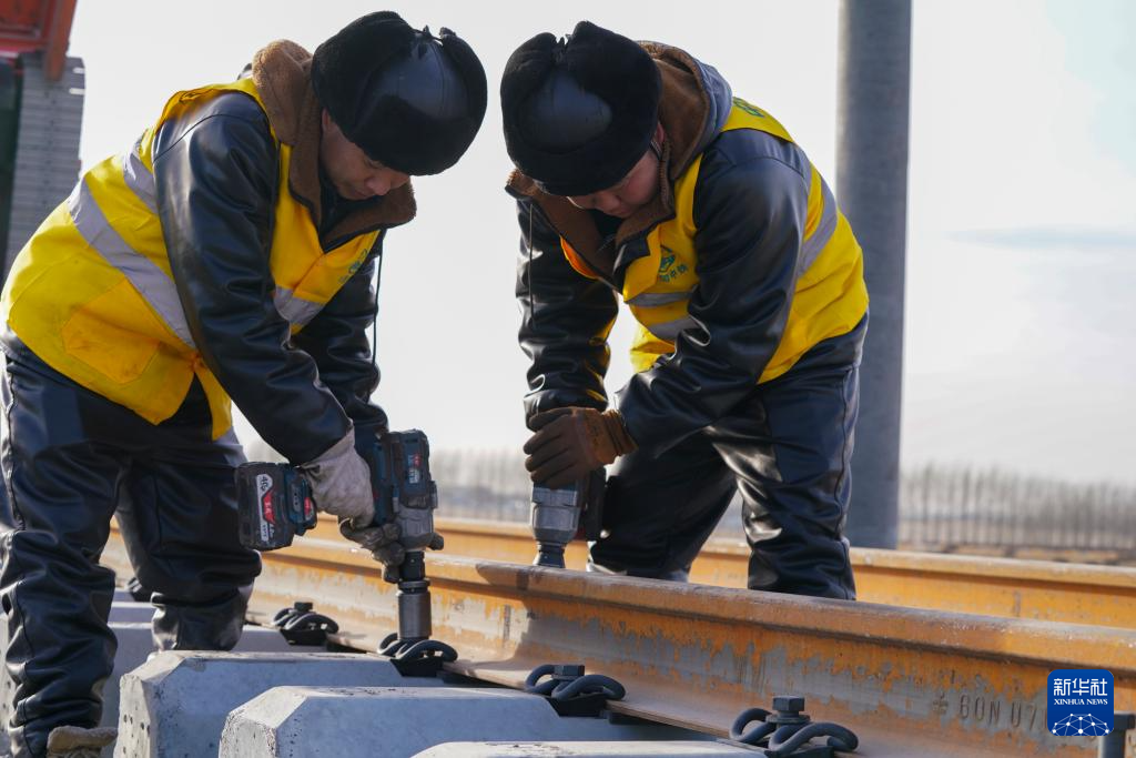 11月25日,在黑龍江省綏化市慶安縣永華村哈伊高鐵哈鐵段鋪軌現場,施工方中鐵二局的四名工人手持電動扳手,將最后一對鋼軌螺栓擰緊,標志著我國"十四五"重點工程哈伊高鐵全線鋪軌貫通,為后續聯調聯試奠定基礎。