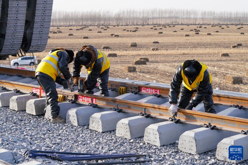 11月25日,在黑龍江省綏化市慶安縣永華村哈伊高鐵哈鐵段鋪軌現場,施工方中鐵二局的四名工人手持電動扳手,將最后一對鋼軌螺栓擰緊,標志著我國"十四五"重點工程哈伊高鐵全線鋪軌貫通,為后續聯調聯試奠定基礎。