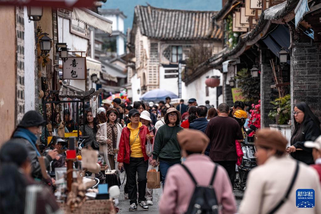 游客在喜洲古鎮觀光游覽(11月24日攝)。