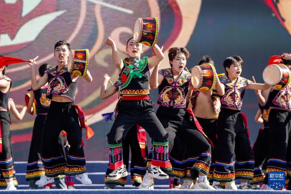 11月25日拍攝的祿勸彝族苗族自治縣成立40周年慶祝大會現場(無人機照片)。