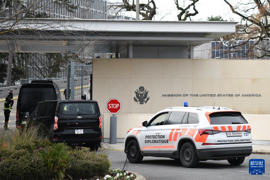 11月23日,在瑞士日內瓦,外交車輛進入美國常駐聯合國日內瓦辦事處代表團駐地。