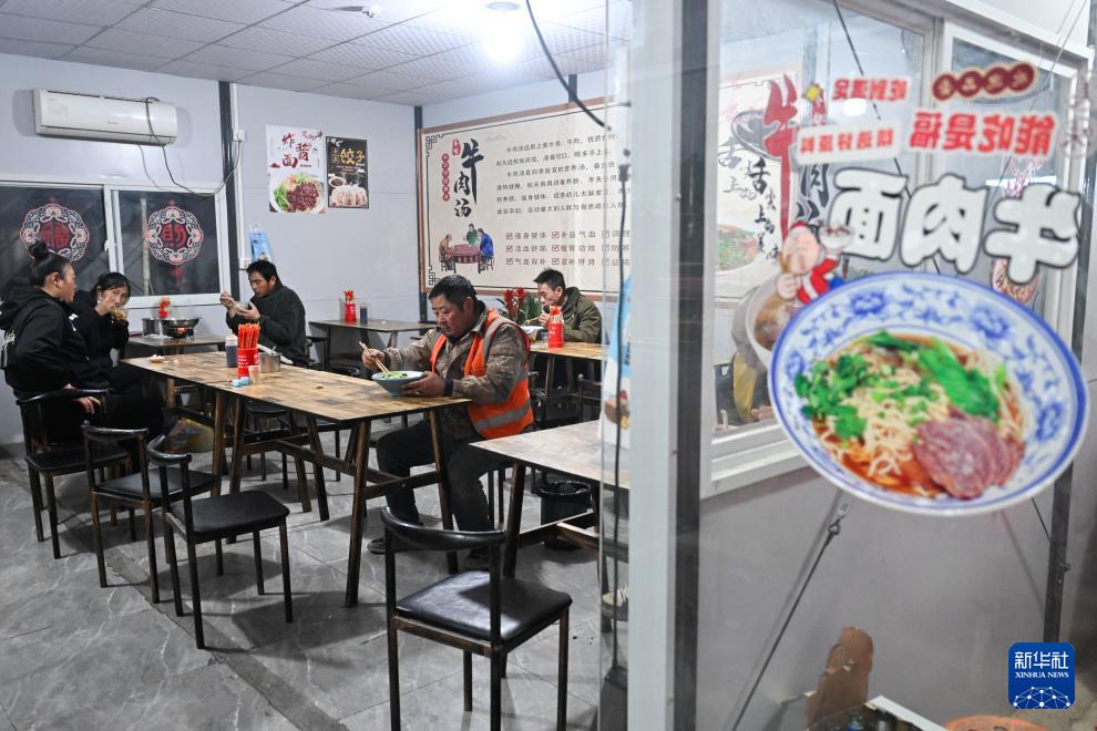 11月25日,工人下班后在蘇州北站新時代建筑工人社區“商業街區”一家飯館吃晚飯。