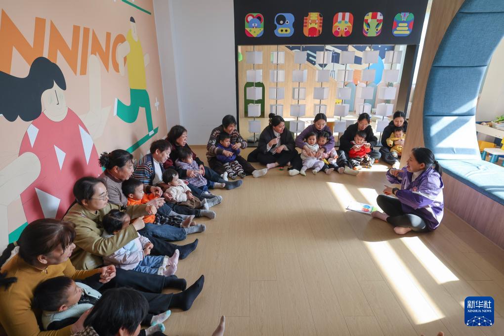 11月27日,在孝順鎮府東社區的黨群服務中心,志愿者給低齡段兒童開展日間托育服務。