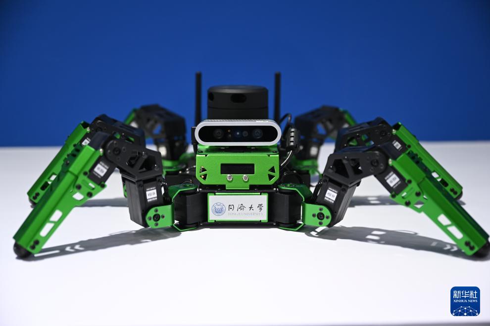 這是12月1日在“僑智匯”成果發布區拍攝的“爬行蜘蛛人”機器人。
