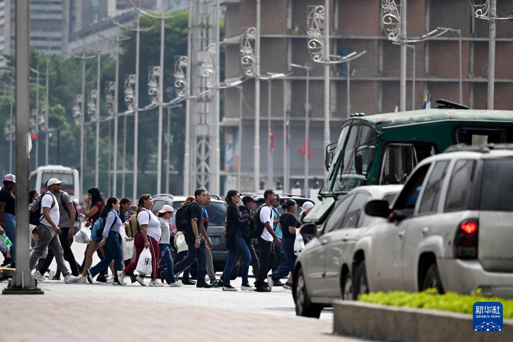 12月2日,在委內瑞拉首都加拉加斯,行人在早高峰時段穿過玻利瓦爾大街。新華社記者 李木子 攝
