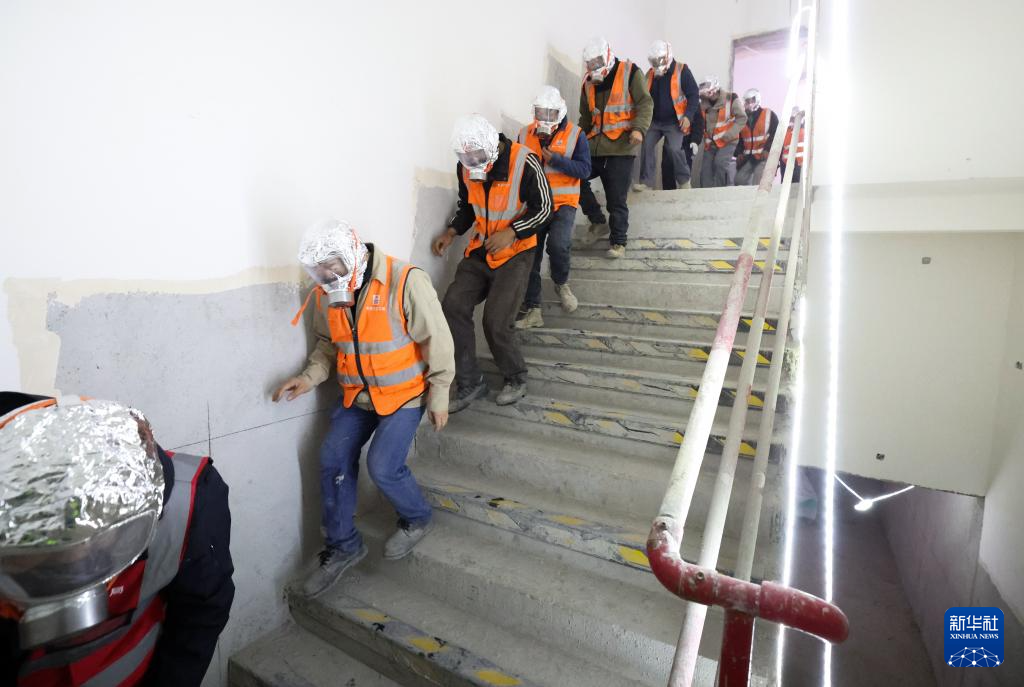 12月2日,項目工作人員在進行消防應急逃生演練。