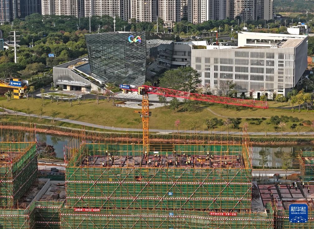 這是中國—東盟國家人工智能應用合作中心人工智能企業研發基地項目建設現場(12月2日攝,無人機照片)。