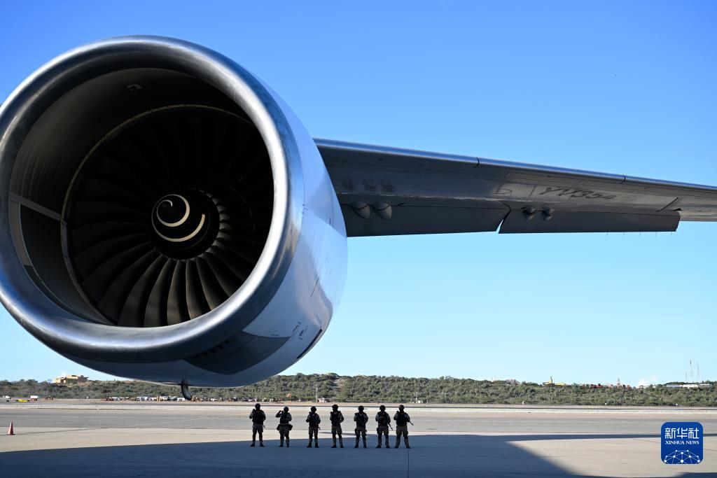 12月3日,在委內瑞拉首都加拉加斯附近的邁克蒂亞西蒙·玻利瓦爾國際機場,士兵在一架從墨西哥起飛的遣返移民航班旁警戒。