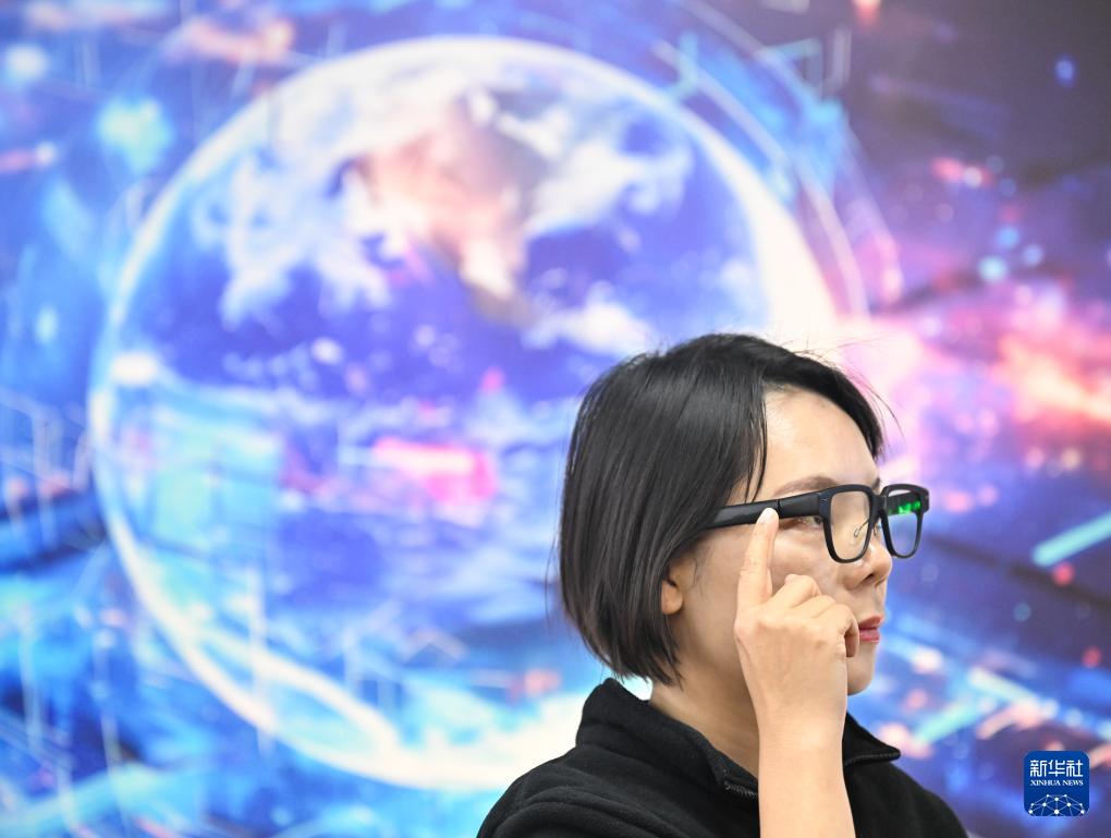 12月4日,在“AI·鏡界—南京人工智能生態街區”,工作人員展示一款AI眼鏡。