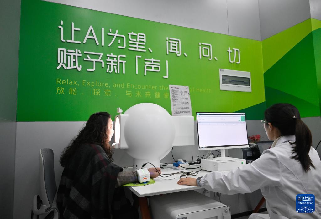 12月4日,在“AI·鏡界—南京人工智能生態街區”,一位女士在“AI診所”進行健康檢測。