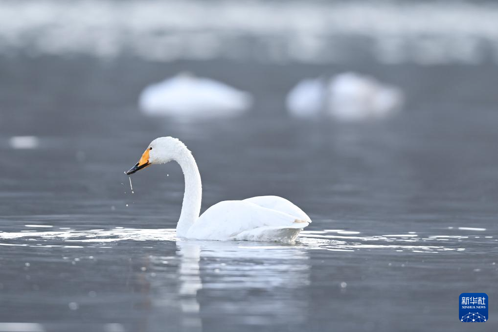 這是12月2日在化隆回族自治縣境內的黃河邊拍攝的天鵝。