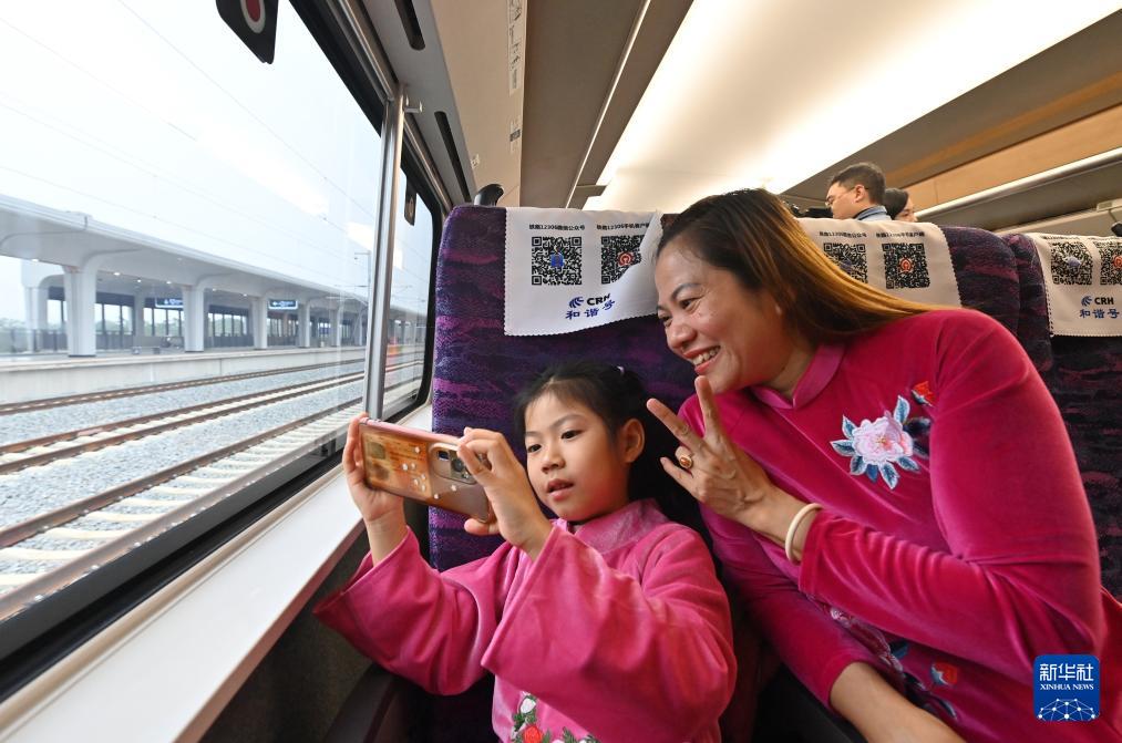 12月5日,旅客在憑祥開往南寧的列車上拍照。
