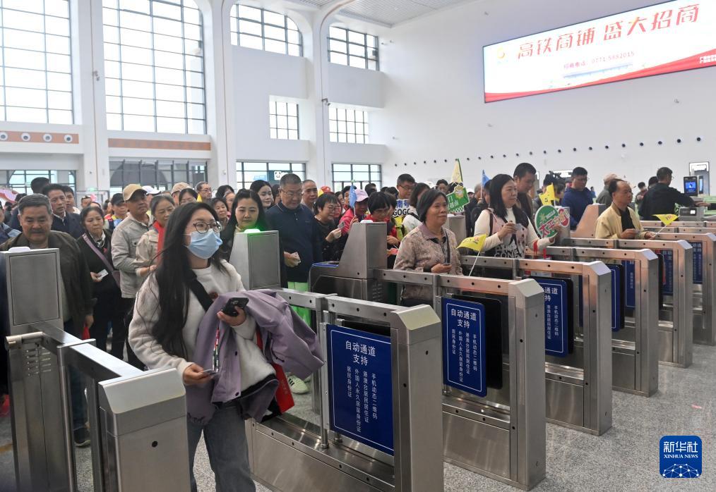 12月5日,旅客在憑祥東站通過檢票口準備上車。