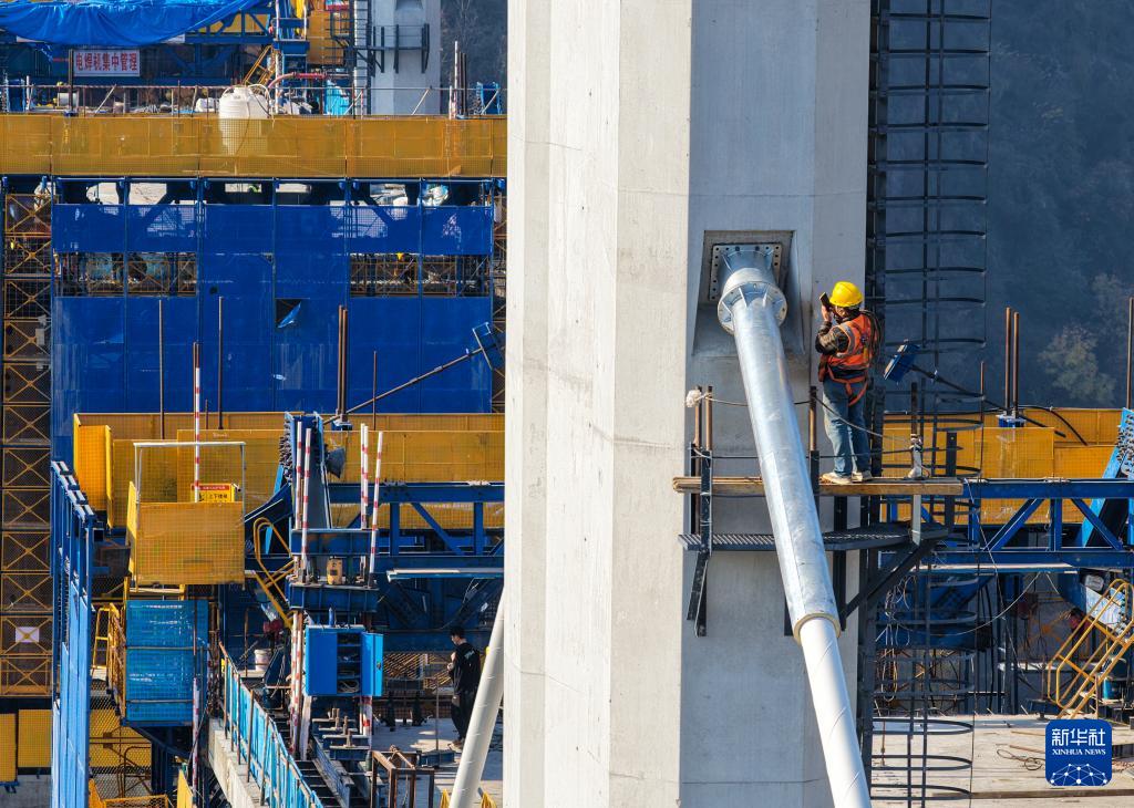 12月7日,工人在西渝高鐵任河特大橋建設現場施工作業。
